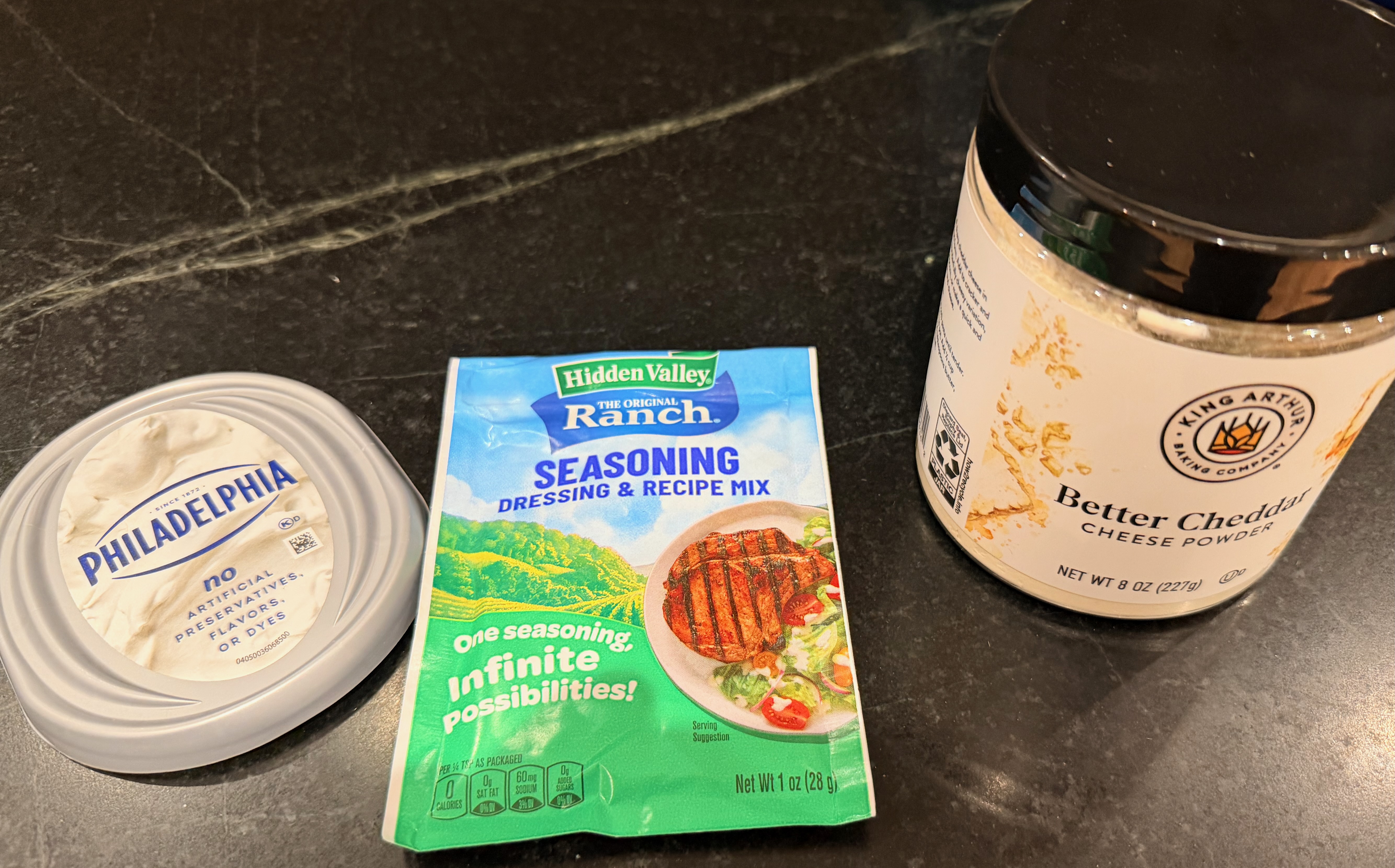- 1 packet (1 oz) of Hidden Valley Ranch mix.