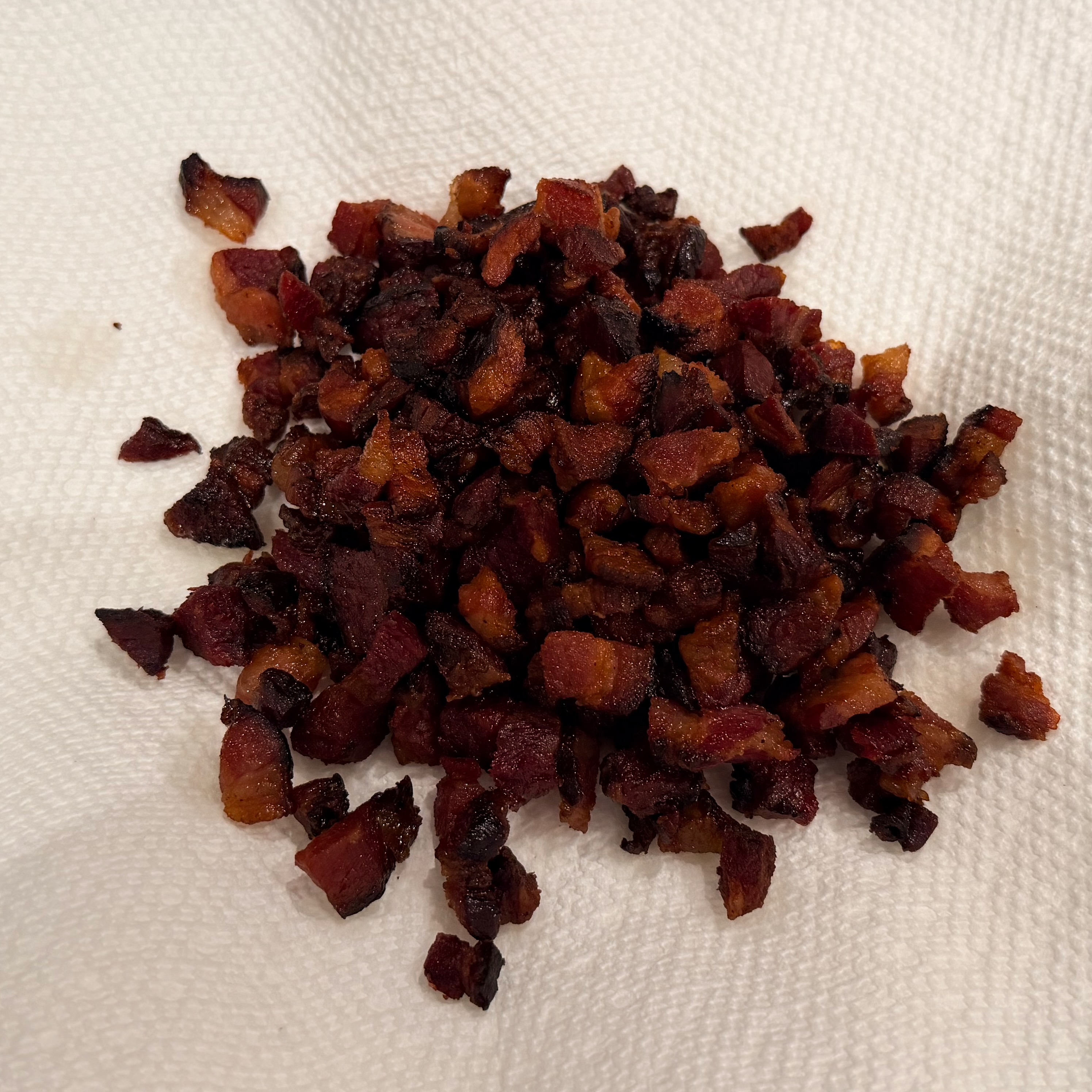 - 1 lb of maple bacon. I use bacon ends but regular should work too.