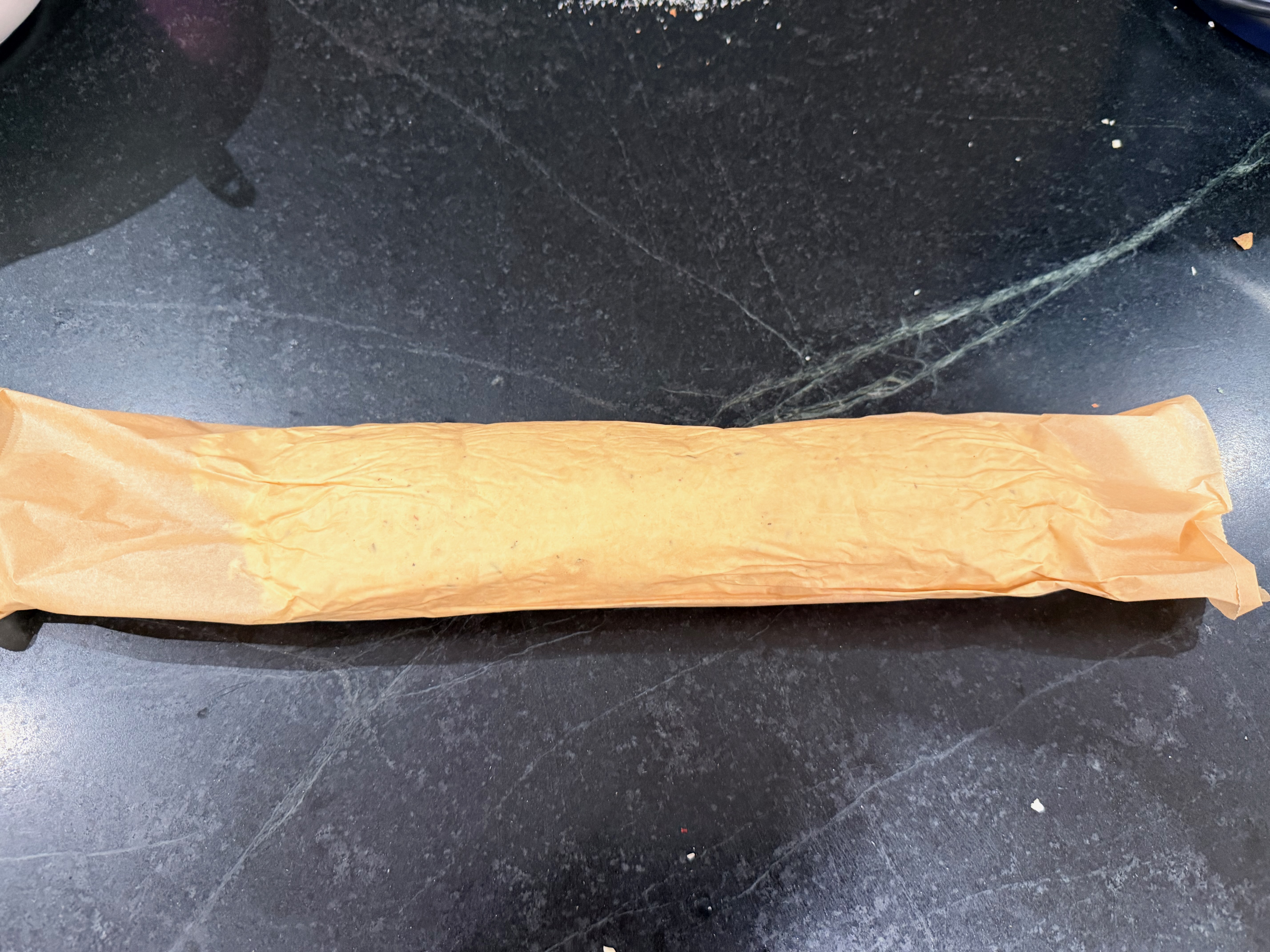 - Use the parchment to form into a smooth log. It’s easier then it seems. But also harder. I have faith (of the heart), you’ll figure it out.